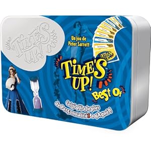 Time's up Best of : Cette boîte contient la moitié des cartes de Time’s Up! Bleu et la moitié des cartes de Time’s Up! Jaune. Il s’agit de cartes du Bleu et du Jaune qui ne figurent pas dans Time’s Up! Party, et dont les personnalités ont été mélangées aléatoirement sur les cartes.Le Best Of contient également l’intégralité des cartes de Time’s Up! Purple. Enfin, le Best Of contient une sélection des meilleures cartes de Time’s Up! Academy (les œuvres compatibles avec la recherche de certaines personnalités). En gros, vous y trouverez une superbe sélection de 876 personnalités et 70 œuvres, soit le meilleur du meilleur de la crème de Time’s Up!, tout confondu.